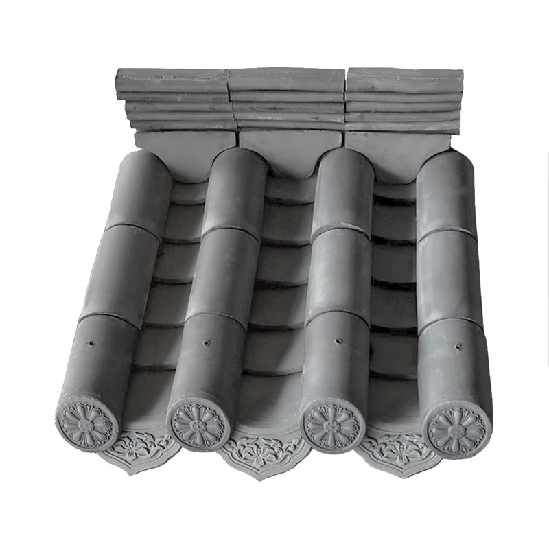 modern restoration and the imitation of antique architecture. Traditional clay blue tiles are fired from clay, resulting in a bluish-gray color. Available in various sizes, they are suitable for slopes ranging from 15 to 90 degrees and withstand temperatures ranging from -50°C to 70°C. Key components include hooks, drip tiles, tubular tiles, and flat tiles, and are suitable for a variety of roofs, including concrete and steel structures.